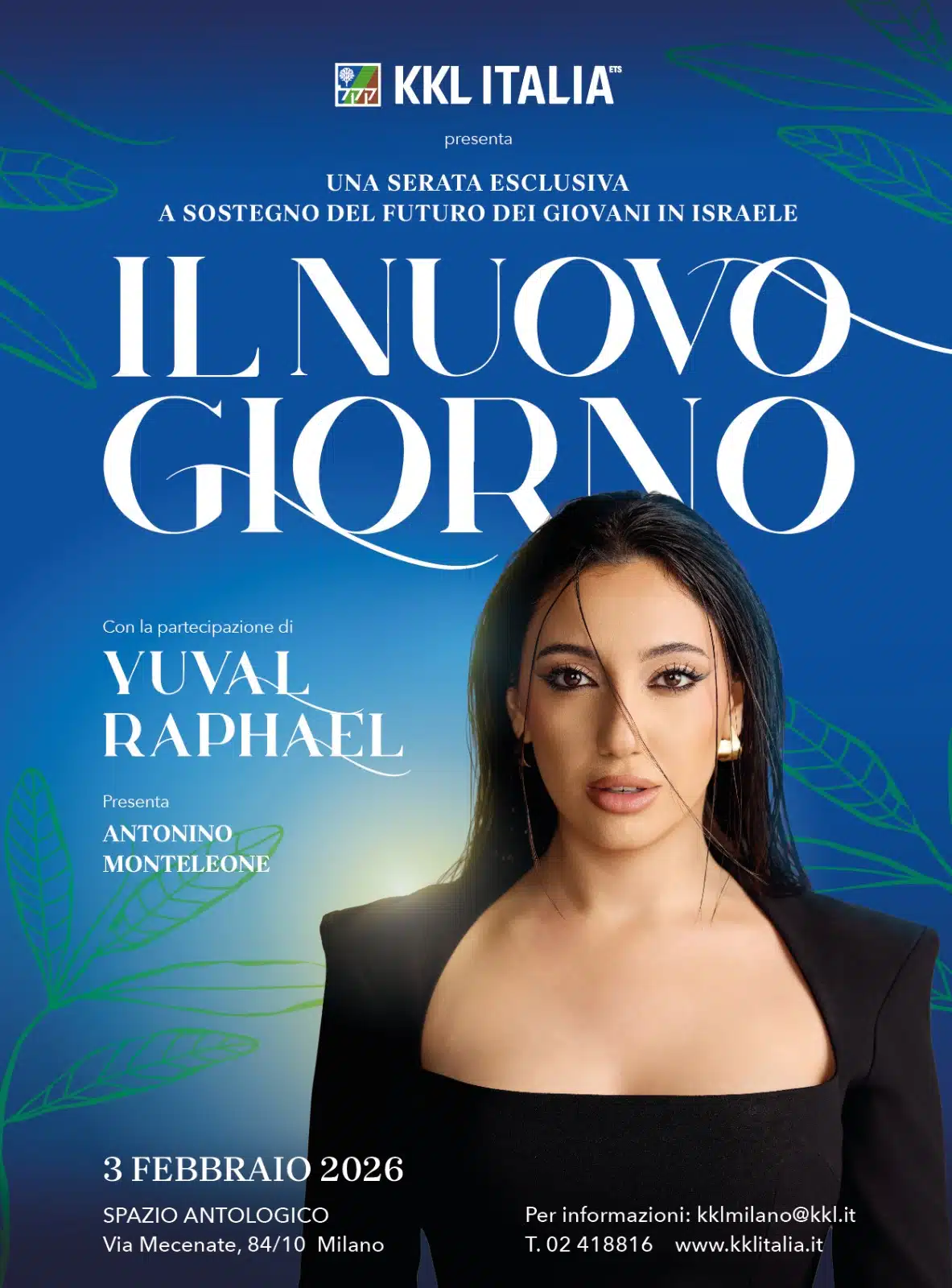 Un evento unico con la partecipazione straordinaria della cantante Yuval Raphael, arrivata seconda all’Eurovision Contest 2025 con la canzone New Day Will Rise.